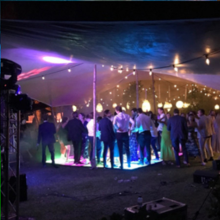 No solo nos enfocamos en la música, sino también en la iluminación y otros efectos audiovisuales, transformando cualquier lugar que vosotros elijáis: un jardín, una playa, una finca o incluso un salón en un entorno especial.